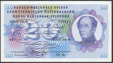 * SZWAJCARIA 20 franków 1974 P 46 v ** stan about UNC ** Prefix 100 M **