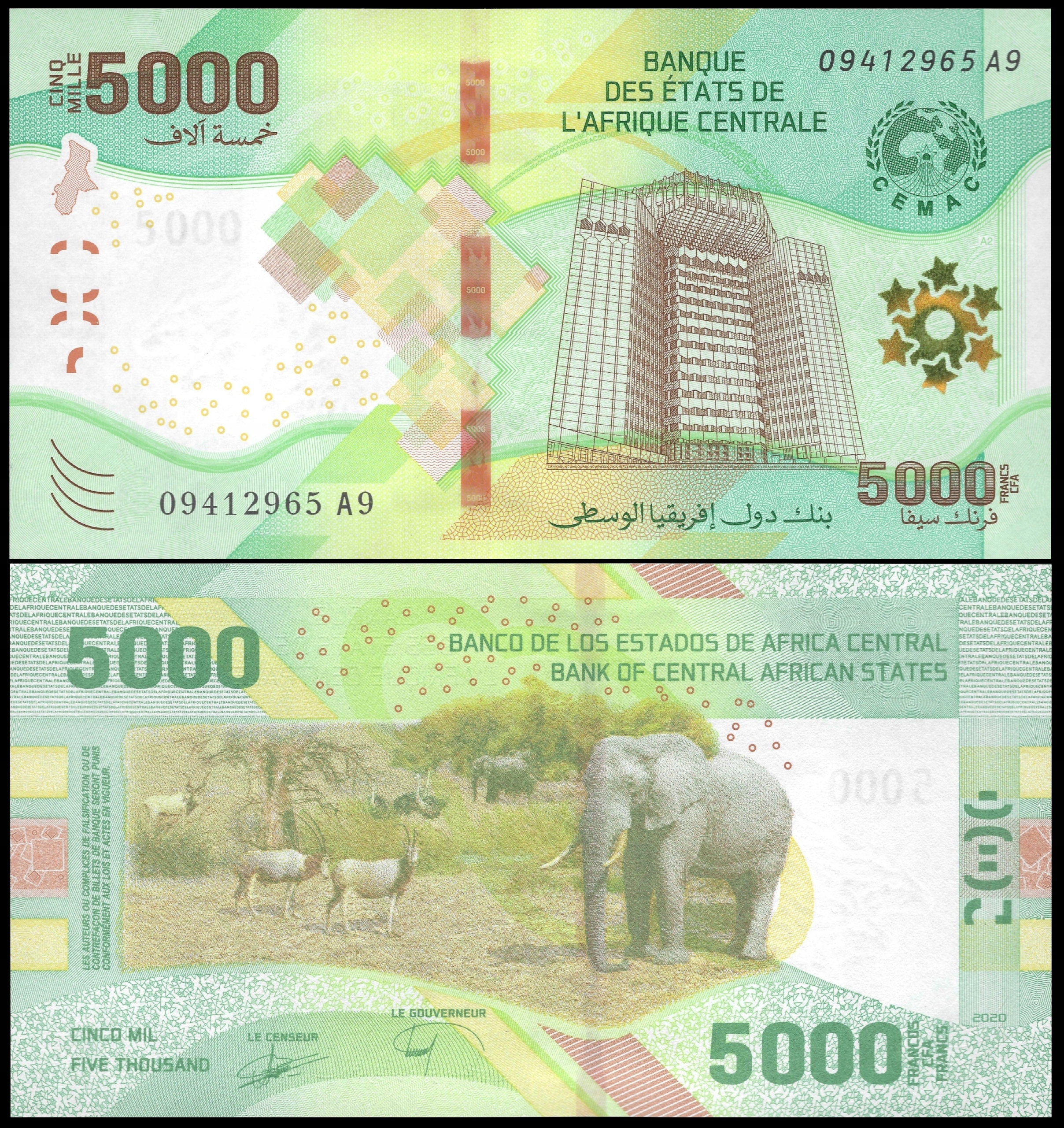 * AFRYKA CENTRALNA/ ŚRODKOWA 5000 franków CFA 2020 W-703 * UNC * seria A