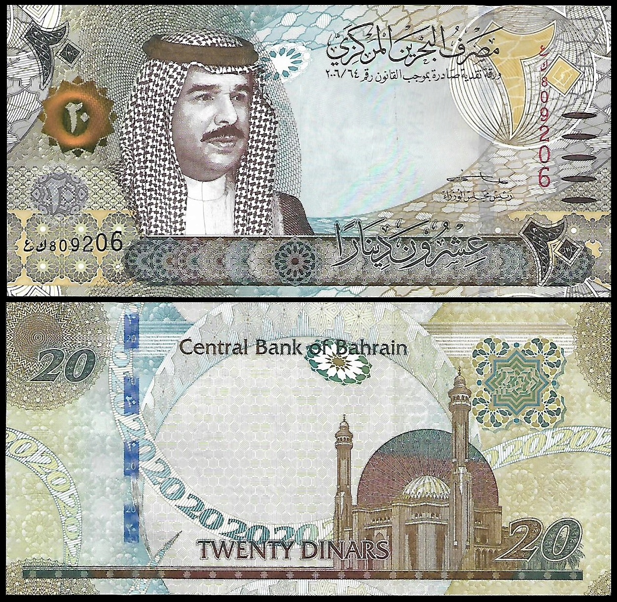 * BAHRAJN 20 dinarów 2006 (2016) P 34 ** stan UNC ** Szejk