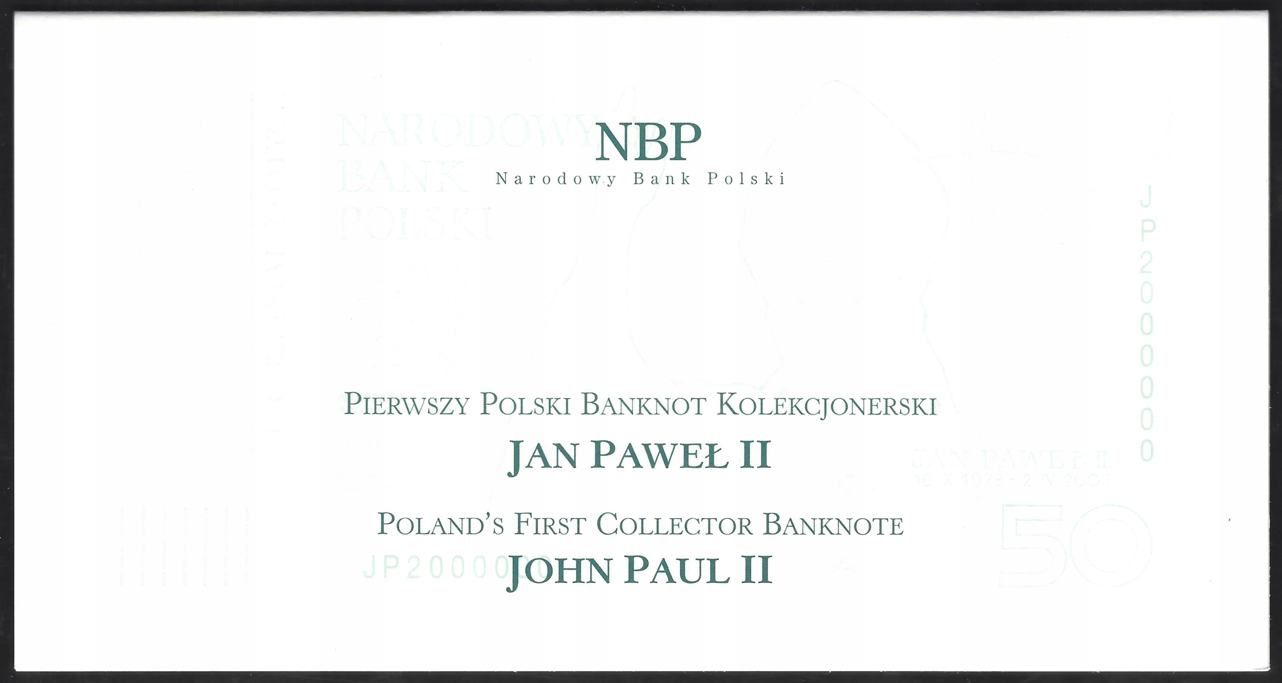 * POLSKA 50 złotych 2006 P-178 papież Jan Paweł II + folder UNC