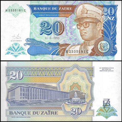 * ZAIR / KONGO 20 nowych zaires 1993 P- 56 ** stan UNC ** Mobutu Sese Seko